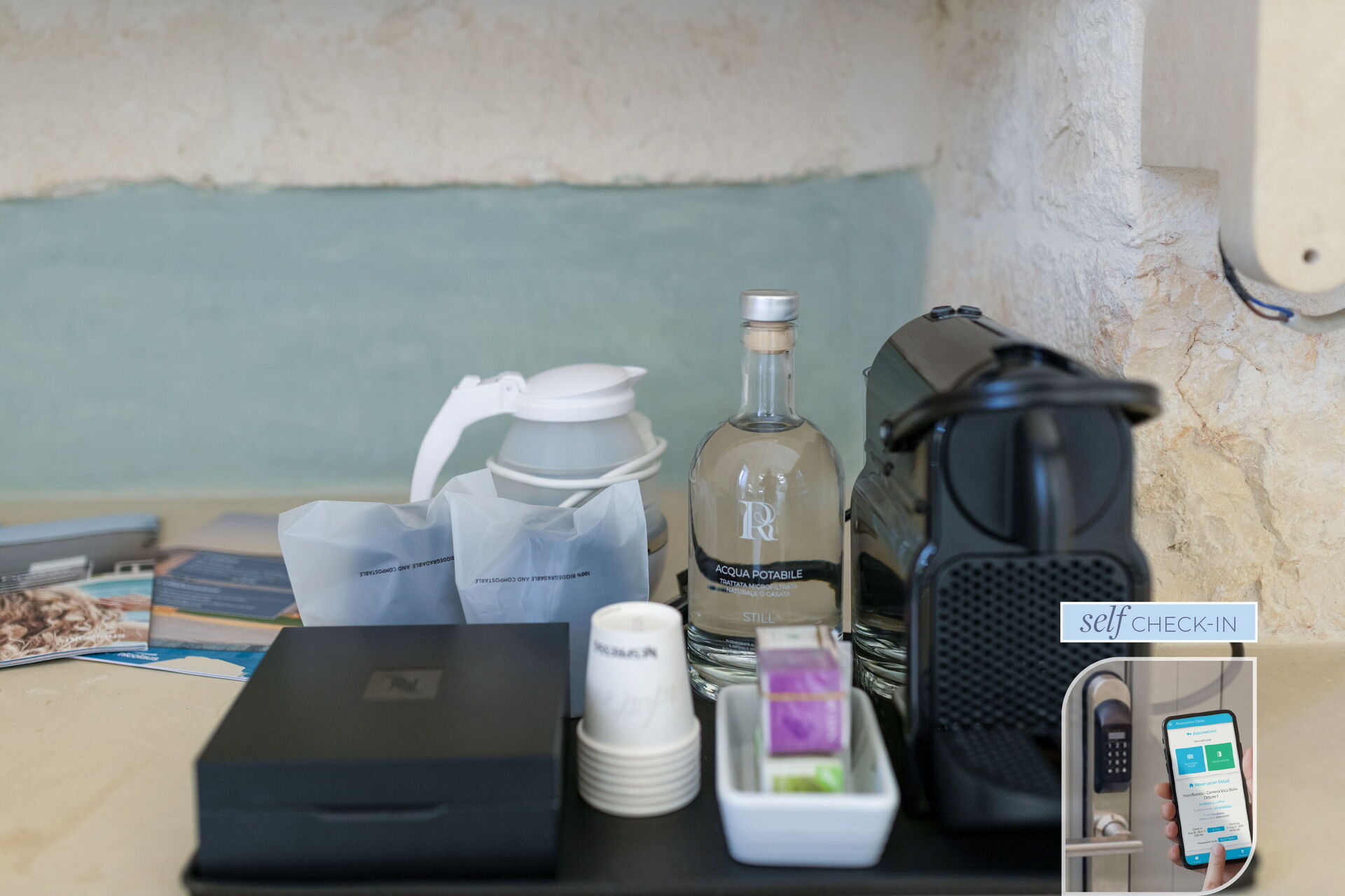 - Room equipment: Nespresso coffee machine, coffee capsules, instant coffee, tea, 75ml still water bottle, kettle;