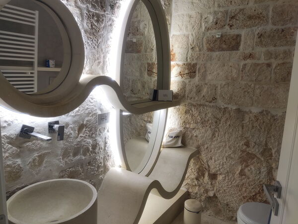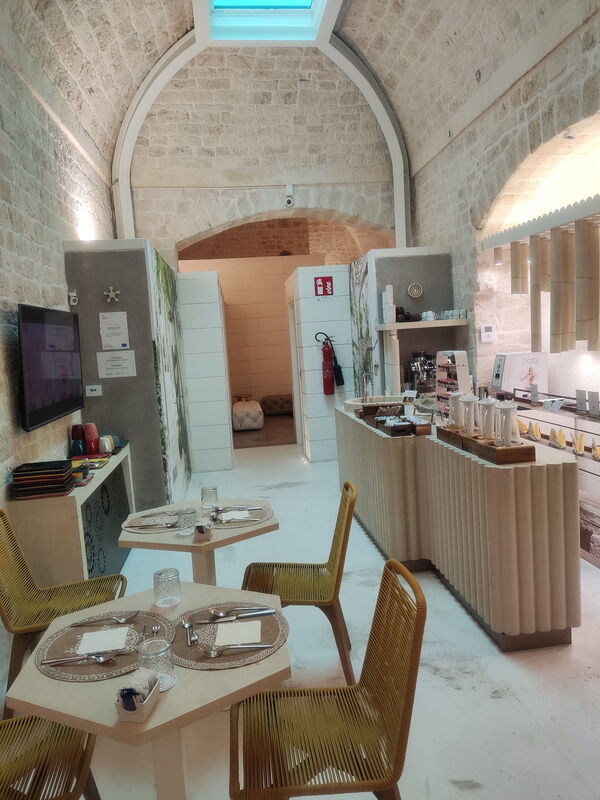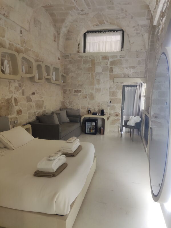Sono rimasto semplicemente senza parole, per una settimana intera, tanto quanto il mio soggiorno! La struttura è in centro, le camere sono ampie e fresce e con un arredamento moderno, proprio come piace a me. I materassi sono comodi e confortevoli come quelli di migliore qualità, e avendo problemi alla schiena lo ho apprezzato oltre modo. La stuttura ha un fascino antico con un gusto moderno. Il bagno e la doccia sono veramente ben rifiniti e la doccia è spaziosa oltremodo, per non parlare della vetrata che ti permette di vedere verso la camera mentre fai la doccia. La biancheria da letto e da bagno aveva un profumo delizioso. Ho scoperto poi che in tutta la stuttura e nelle camere sono presenti dei profumatori tipici della Puglia che prendono il nome di PUMO di Puglia che hanno delle fragranze fantastiche. Sono riuscito anche a farmi il bagno nella piscina nell roof scoprendo poi che era disponibile anche l'idromassaggio. Ero da solo ed è stato un momento di totale relax. Il self check in a distanza inizialmente mi ha creato qualche dubbio, ma a pensarci bene e dopo averlo provato è veramente comodo e ti garantisce una grandissima libertà. La spiegazione che mi ha mandato per email la Sig.ra Tamara era precisa e chiara, ho inserito i codici e via dentro la camera a farmi una doccia calda, senza perdite di tempo inutili ai banconi della reception come invece avviene nei posti dove vado solitamente.